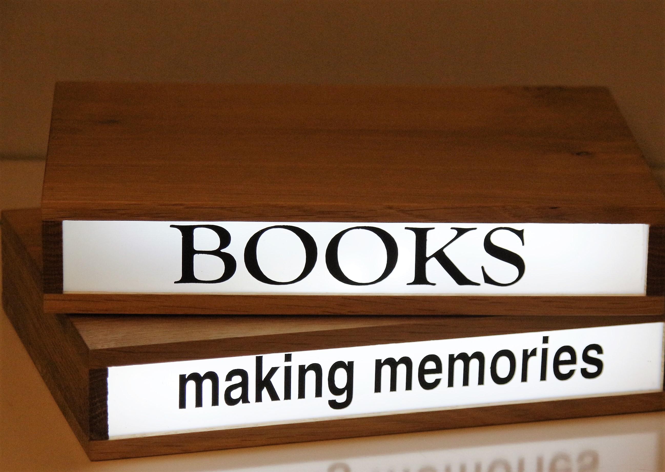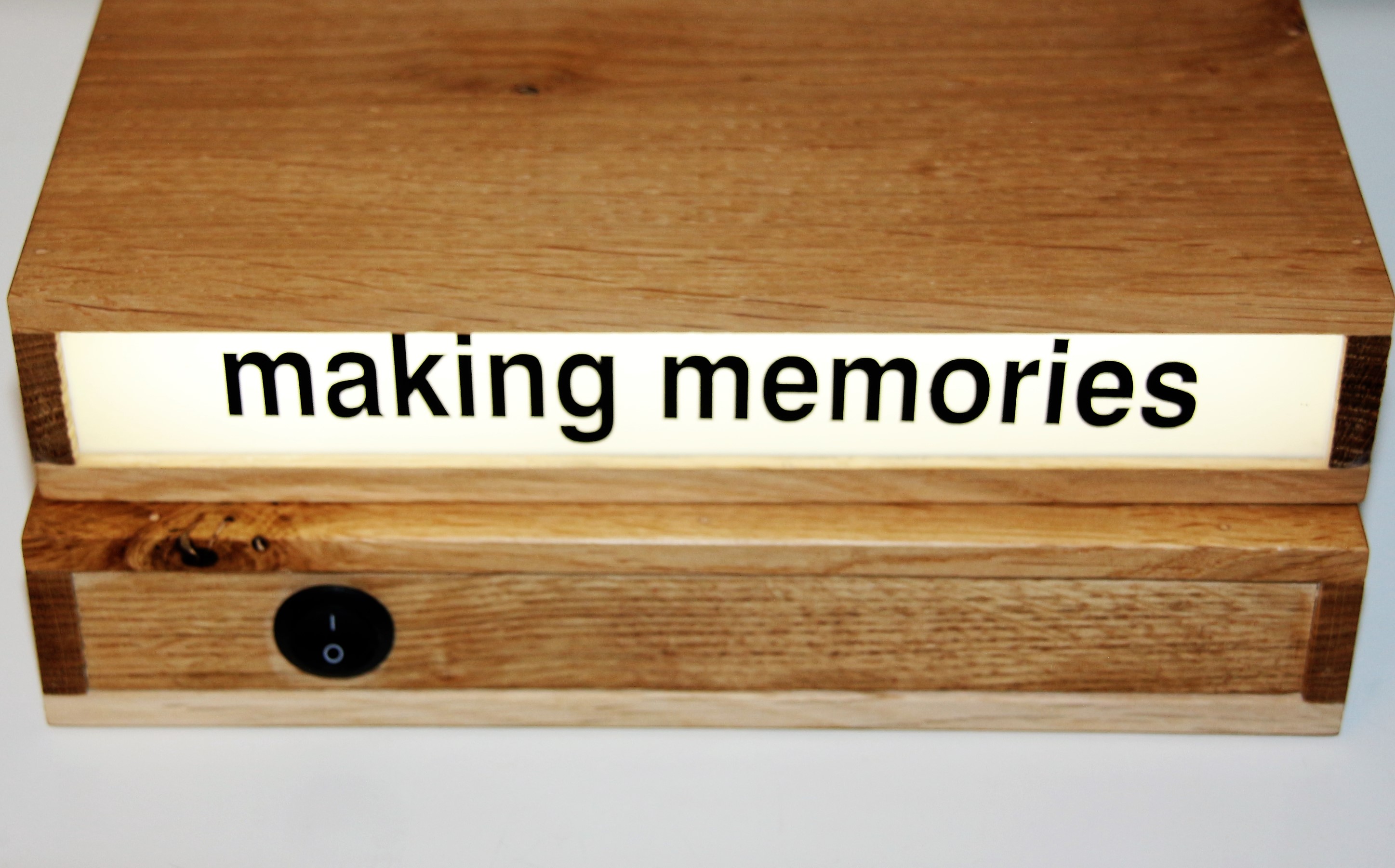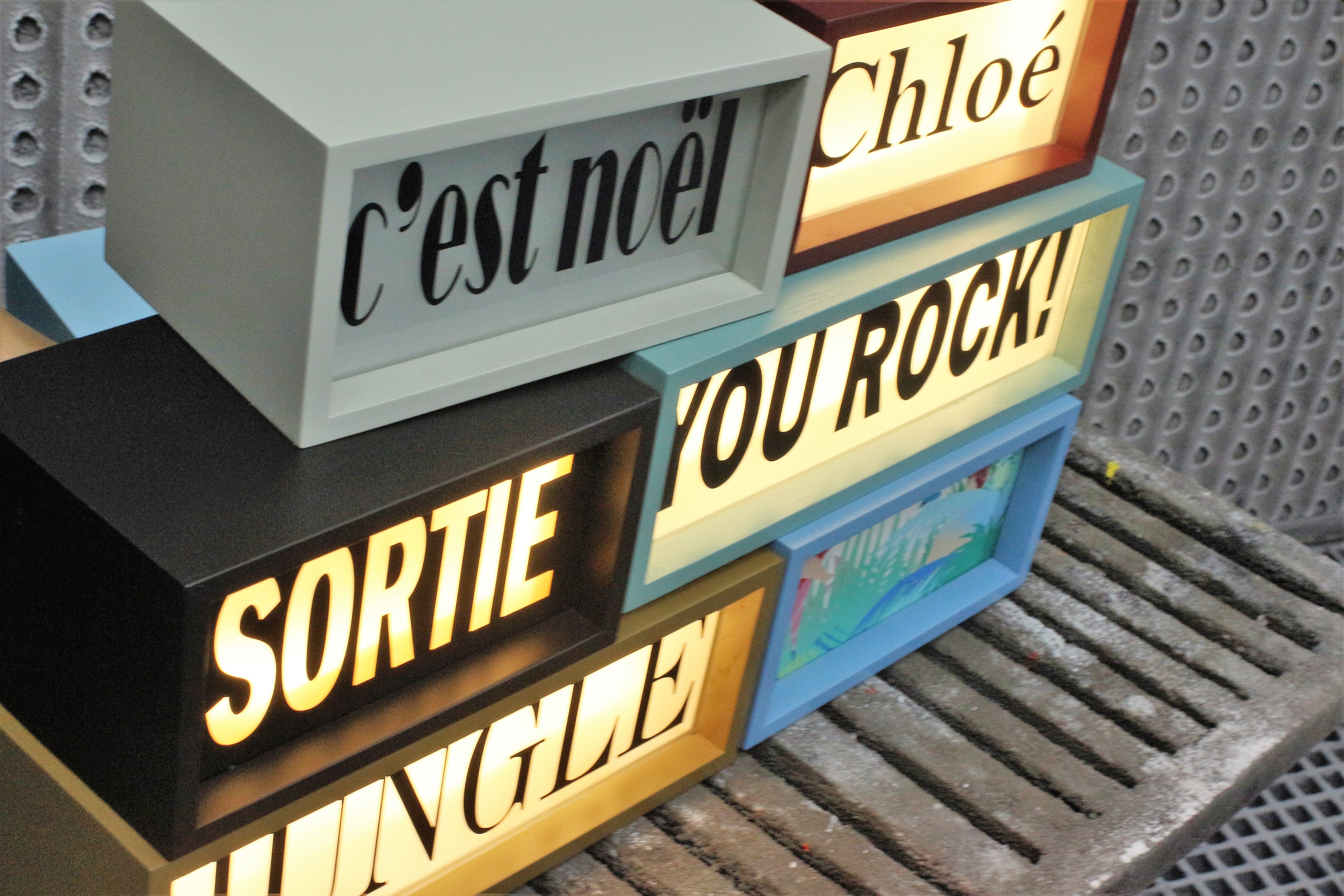 Her wooden light box are beautifully made objects with a strong identity, appealing to verbal and visual communication.